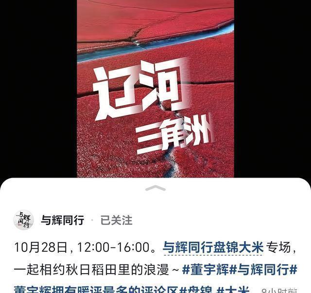 另一个好消息更让人兴奋,28日宇辉要去辽宁盘锦开启盘锦大米的溯源之旅啦!到时候他会深入田间地头,亲自感受收割的快乐。重点关注盘锦红海滩国家风景区呀,一边看宇辉体验农耕,一边欣赏绝美的红海滩,这画面想想就超精彩,绝对不能错过!