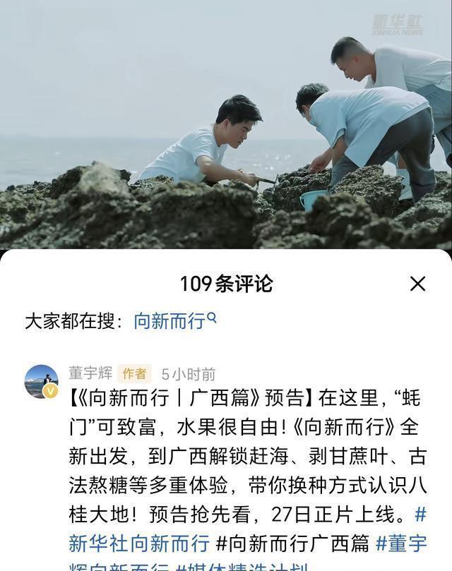 双喜暴击!宇辉新华社合作节目《向新而行》27日首发,盘锦溯源28日开始! 刚为农高会的宇辉激动完,又迎来两个重磅好消息!第一个好消息就是,宇辉个人账号发预告啦,之前和新华社合作在广西拍摄的《向新而行》第二集,27日就要全网首发了!这次宇辉自己带着镜头,解锁了赶海、熬糖这些超有意思的瞬间,看预告片里他认真学习的样子,还有广西的美景美食,真的太期待了!